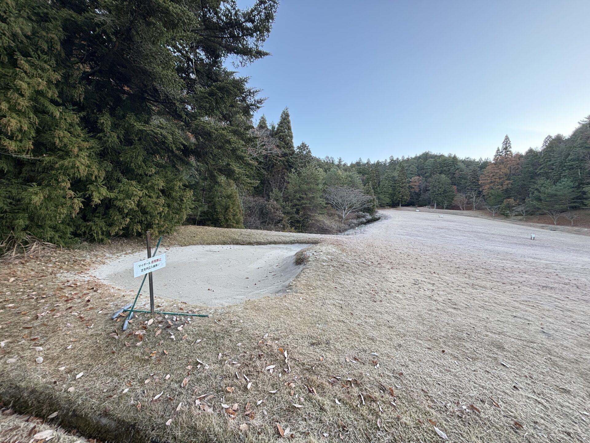 打球練習場の左端にバンカーが配置されています。