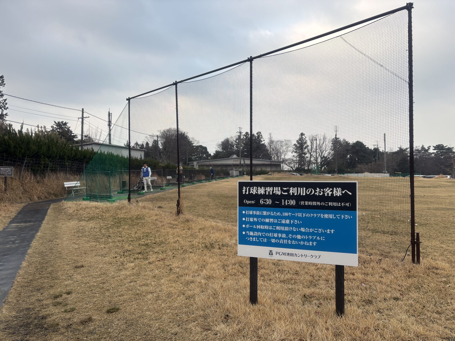この練習場のはクラブハウスから少し距離がある(250m)ので、利用する場合は時間に余裕をもって行きましょう。